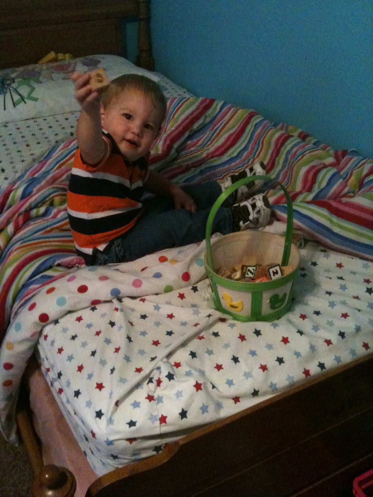 The End. 10.5 attempts later I finally give up and force him to stay in his room for 15 minutes. In an attempt to stick to my bizarro parenting experiment, I give him a couple of toys, a drink, and some cereal (i.e. bribery). I hoped he would fall asleep. He did not.
